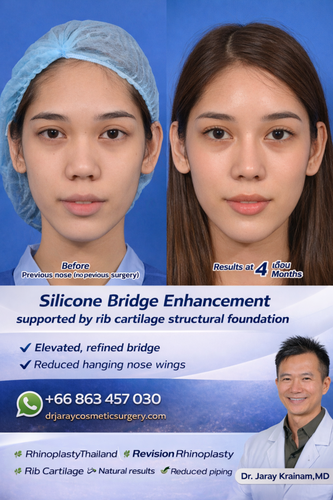 This technique combines silicone for precise bridge definition with the patient’s own rib cartilage for internal strength, delivering both aesthetic improvement and long-term stability.